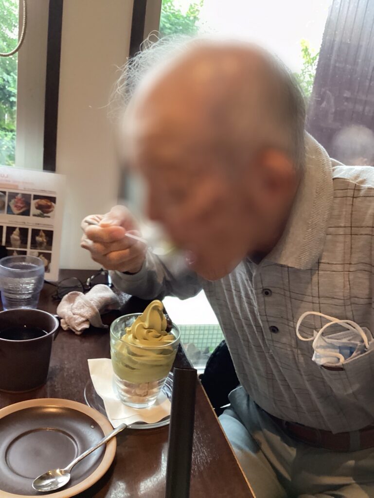 ソフトクリームやケーキセット、ホットドックやポテトなどお好きなものを選んでいただき☺️、それぞれ楽しい時間を過ごされました。喫茶店によく通われた話や若い頃の話などお話いただけました。💕