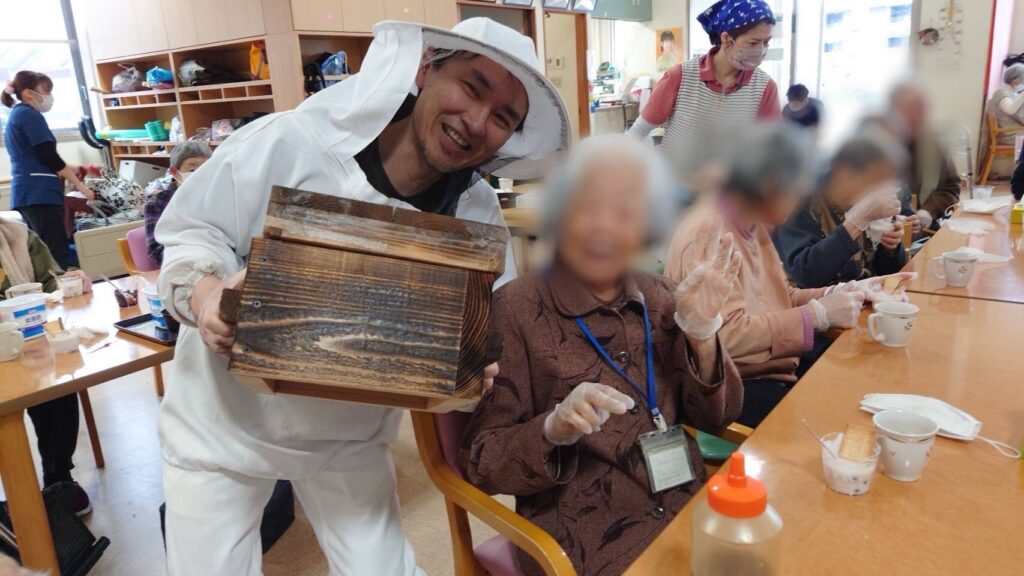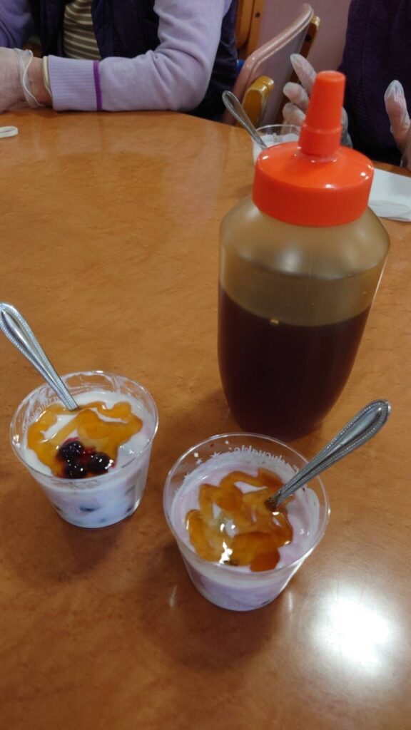 養蜂家の川瀬先生のお話を聞き、皆さんハチミツたっぷりのヨーグルトを美味しそうに召し上がってみえました。