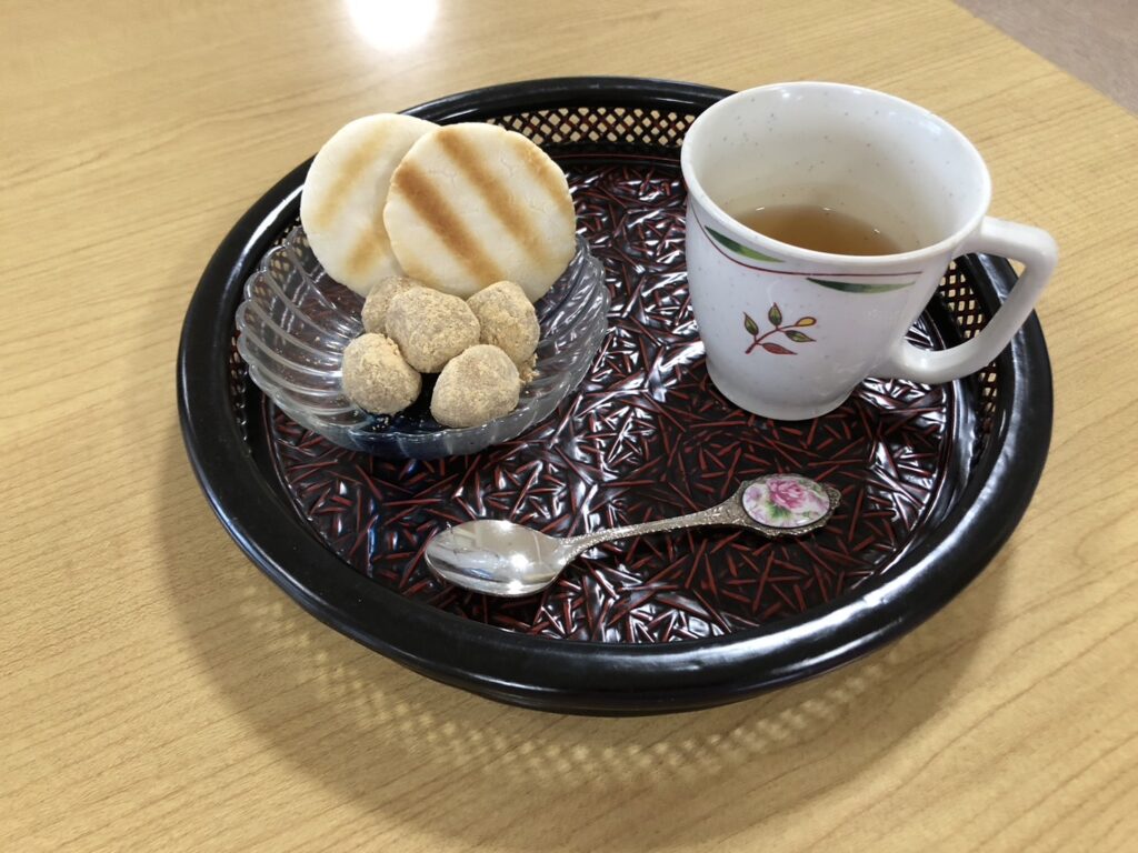 きな粉とシロップをスプーンでこねてひとまとめにして、小さく丸めてどこか懐かしい甘さのおやつが出来上がりました!