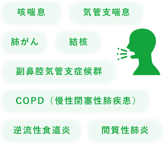 3週間以上続く咳の場合、以下のような疾患が主な原因として考えられます。