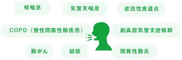 3週間以上続く咳の場合、以下のような疾患が主な原因として考えられます。